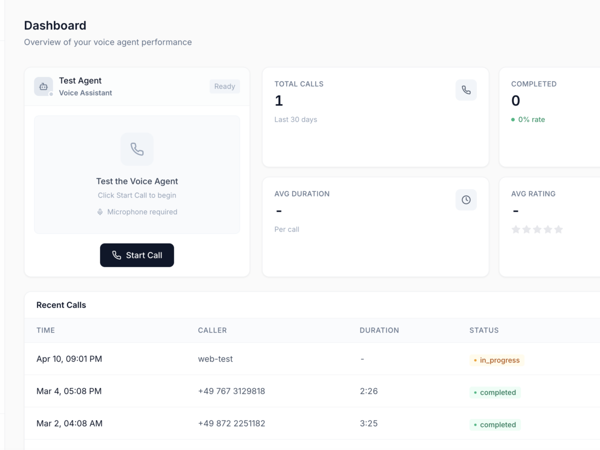• FastAPI backend with SQLAlchemy + SQLite for call persistence